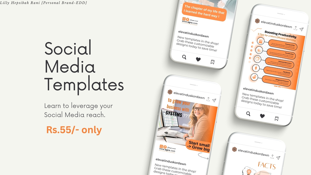 In total 38 templates that includes 1 carousel(11 templates), series of 27 templates for every day posting, and a sample reel for your social media. You can modify with your own customized images, text, business type related to any industry to enhance your profile and reach. Along with testimonials, facts and service/product promotion templates >2 exclusively designed.